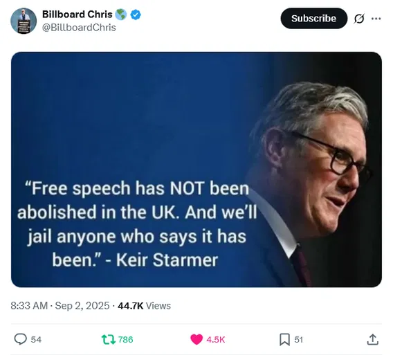 The moment I stepped off the plane at Heathrow, five armed police officers were waiting. Not one, not two—five. They escorted me to a private area and told me I was under arrest for three tweets. In a country where paedophiles escape sentencing, where knife crime is out of control, where women are assaulted and harassed every time they gather to speak, the state had mobilised five armed officers to arrest a comedy writer for this tweet (and no, I promise you, I am not making this up.