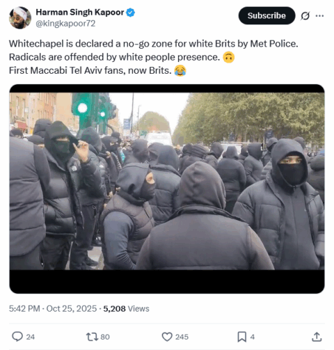 The anti-UKIP counter-demo in Whitechapel was not an anti-racist march. We all know it. The dogs in the street know it. It was an orgy of intolerance dolled up as tolerance. It was a display of Islamist arrogance wearing the thin veil of “anti-racism” to fool the overeducated idiots of the bourgeois left. Well, if they’ll believe someone with a cock can be a lesbian, they’ll believe Islamist fanatics who dream of annihilating the Jewish homeland are anti-racists.