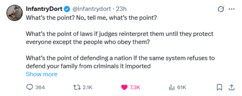 What’s the point of laws if judges reinterpret them until they protect everyone except the people who obey them?