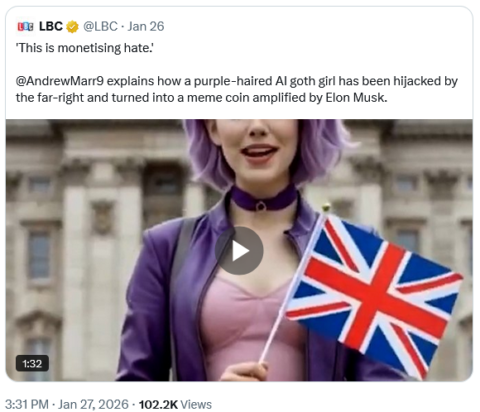 Since her “birth”, Amelia has indeed become increasingly popular. From an average of around 500 posts a day when she was first introduced, the figure rose to roughly 10,000 daily posts starting on 15 January, when the meme broke through to international audiences. Amelia has since reached the highest levels of the right-wing internet ecosystem, even being reposted by Elon Musk himself.