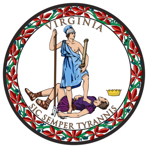 The state seal of Virginia. I am told that the motto Sic semper tyrannis does not actually stand for “Thus always to taxpayers”, all appearances to the contrary.