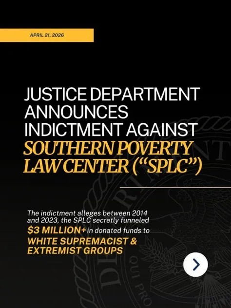 - https://www.justice.gov/opa/pr/federal-grand-jury-charges-southern-poverty-law-center-wire-fraud-false-statements-and/