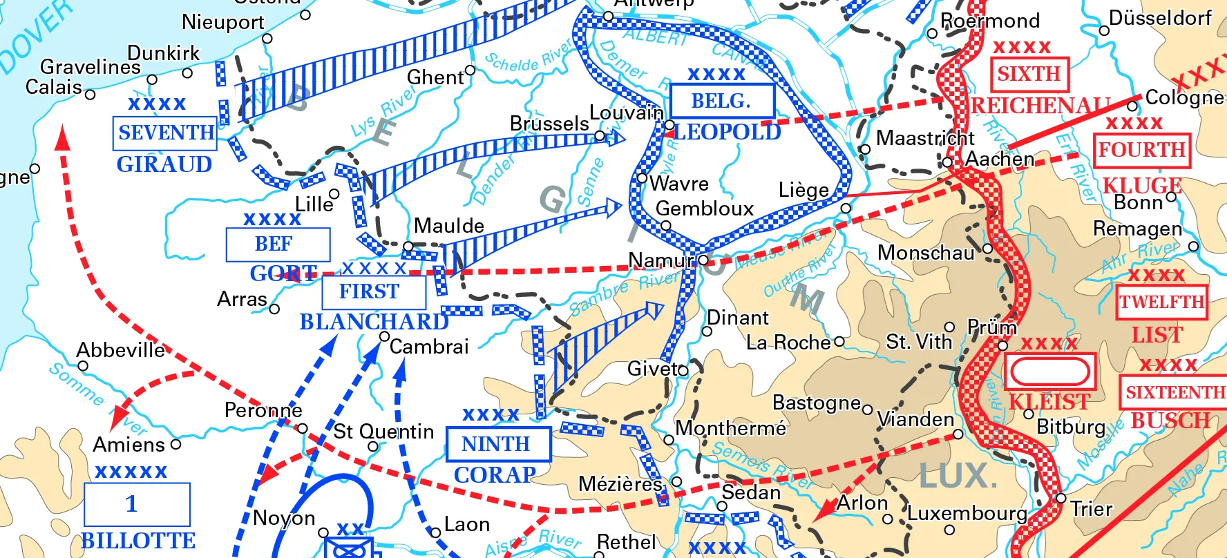 Detail from the West Point Military Atlas map of the “Campaign in the West, Disposition and Opposing Forces, 1940”