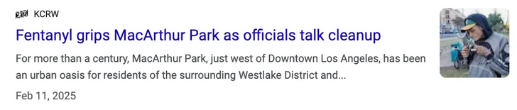 For more than a century, MacArthur Park, just west of Downtown Los Angeles, has been an urban oasis for residents of the surrounding Westlake District and the wider city. But in recent years, MacArthur Park has also become synonymous with fentanyl, the synthetic opioid that can be 50 times more powerful than heroin. Open fentanyl abuse is now so common, the drug might as well be an unofficial symbol of the park.