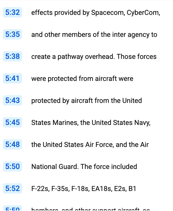 With 150 aircraft in the air, launching from something close to two dozen points of origin, every asset arrived in place and on time, while the lights went out below them. From the transcript: