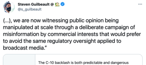He calmly rose in the House of Commons and quietly accused C-11’s critics of deliberately spreading “misinformation” — a chilling threat given the government’s plans to deal with he same in “Online Harms” legislation later this year.