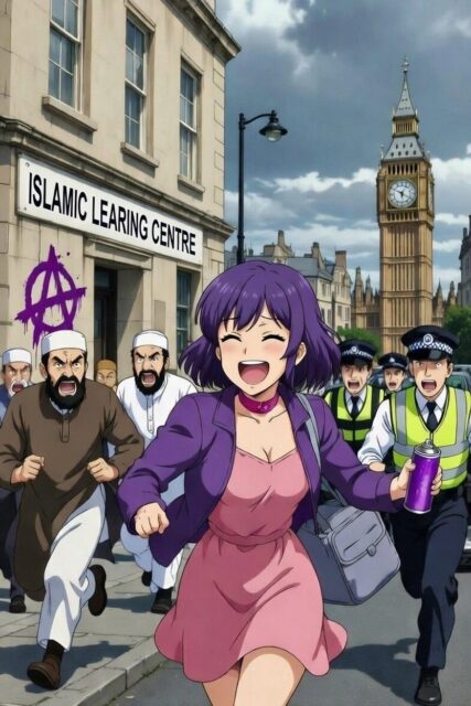 There’s a lot to laugh about in this. For example, brightly coloured “danger hair” has generally been the hallmark of women on the far left. Amelia subverts this by giving our new heroine her distinctive purple bob. Will we see the pro-Hamas nuts and trans cultists abruptly return to natural hair colours to dissociate themselves from Amelia? That would be funny.