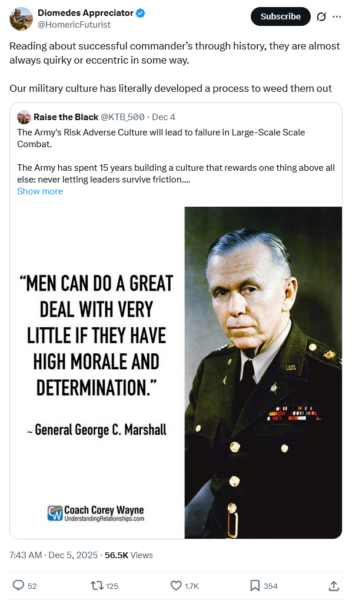 The modern military is devoid of both victory and defeat. A victory you aren’t allowed to win. A defeat you can explain away. Much of it is due to the American people themselves, and their disdain for violence. At least violence against what sane people classify as enemies.