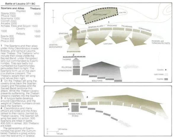 - In the wake of the Theban revolution, Sparta went to war with Thebes and its Boeotian allies for the next decade. When peace talks broke down in 371 BC, the stage was set for the climactic Battle of Leuctra. Through masterful and unprecedented tactics on the battlefield, Epaminondas led the outnumbered Theban armies to a decisive victory over the Spartans.