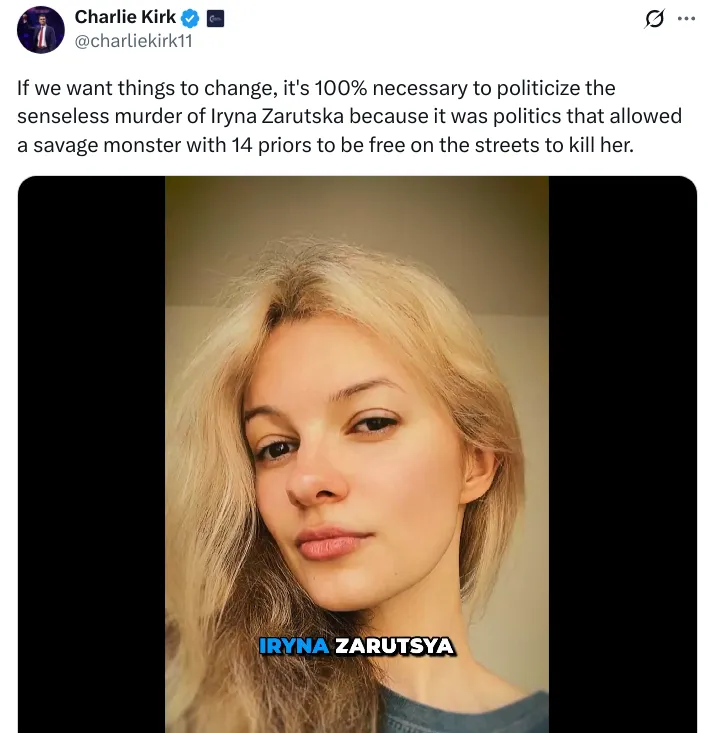 John Carter explains why we all need to watch the video to understand what happened. The post was originally about the murder of Iryna Zarutska on the light rail system in Charlotte, North Carolina. Before he published it, he heard about the shooting of Charlie Kirk:
