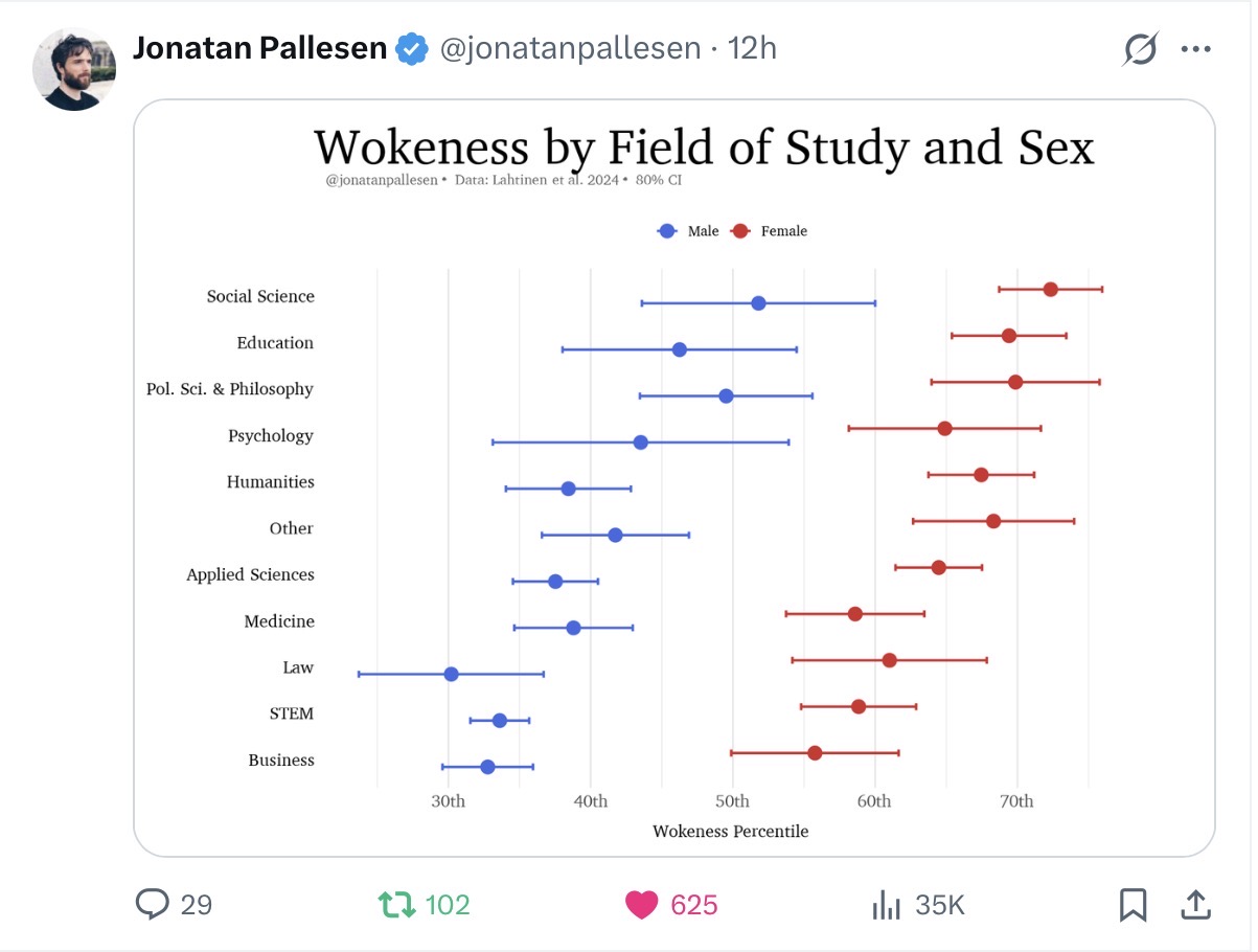 Andrews summarized feminization as the prioritizing of feminine over masculine interests, but additionally prioritizing “empathy over rationality, safety over risk, cohesion over competition”. All these traits combine, she believes, in institutions where females are numerically dominant, to define “wokeness” and “cancel culture”.